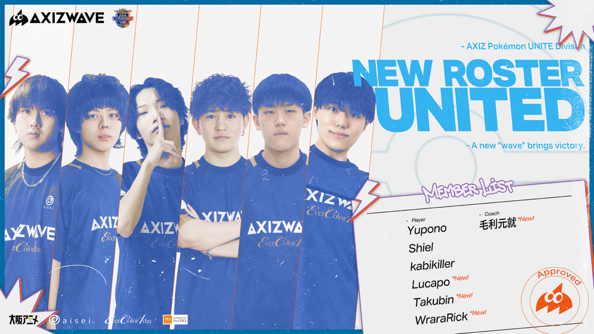 この度、AXIZ WAVE『Pokémon UNITE部門』に、以下の選手・コーチが加入したことをお知らせいたします。